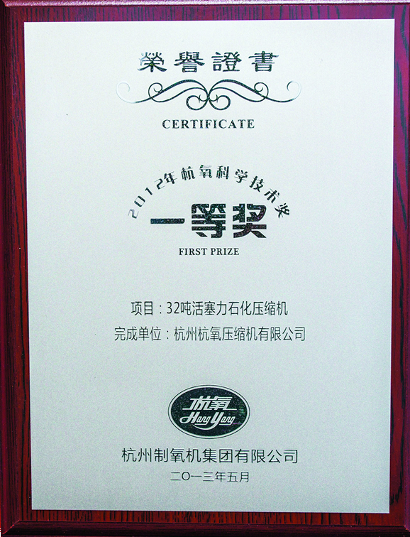 杭氧集團科技獎-公司新聞-杭州杭氧壓縮機有限公司